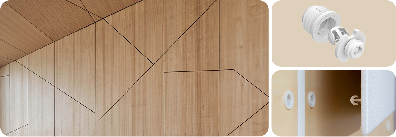 Fixations invisibles pour marché marine, ébénisterie, mobilier